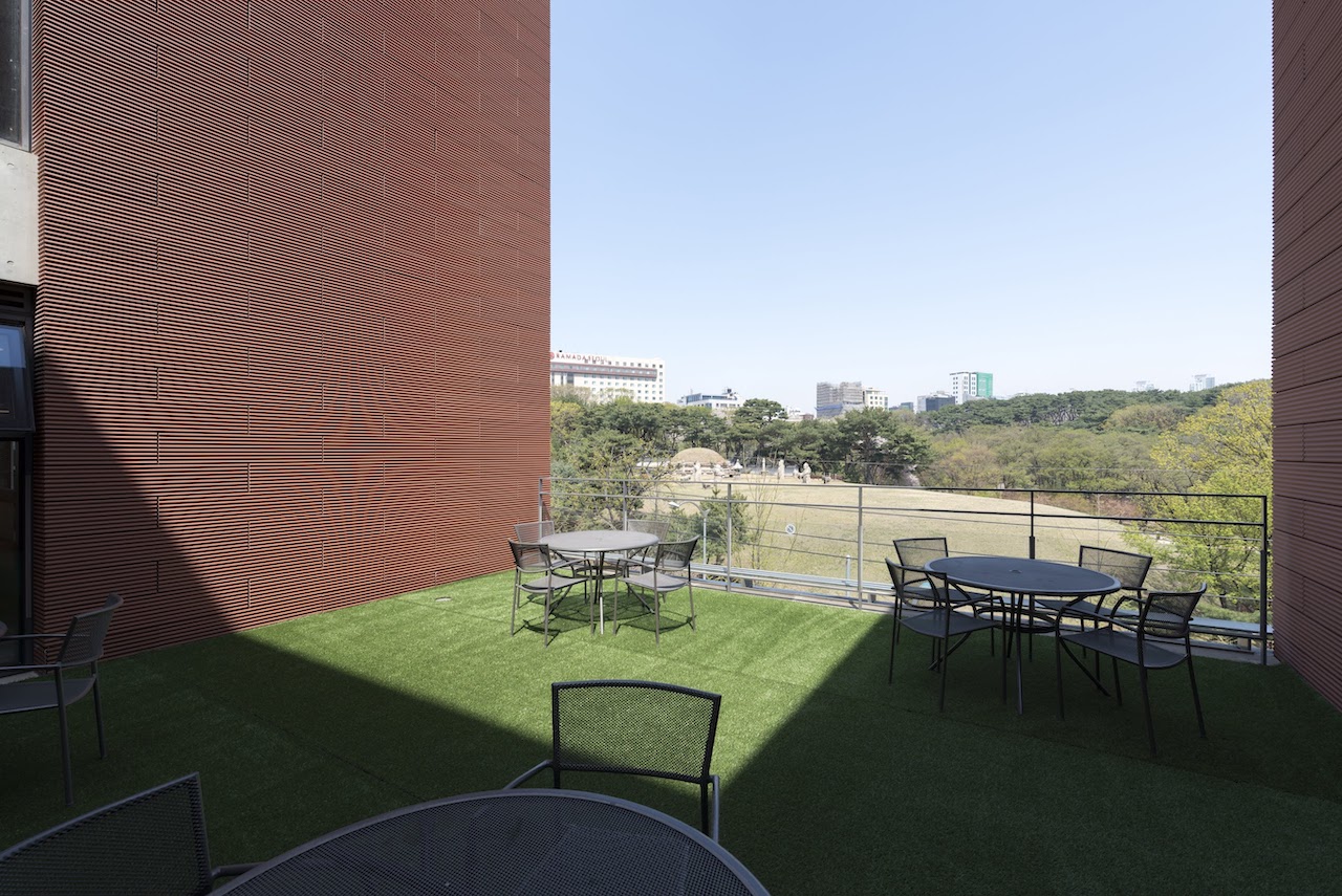 선릉이 보이는 야외 휴식 공간